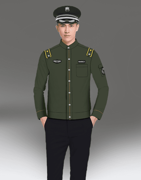 2011式保安员服装整体采用庄重沉稳的深色系,蓝灰色外衣搭配浅灰色衬衣,提升了保安队伍的整体形象。这套服装包括男女春秋常服、短袖衬衣、长袖衬衣、执勤服、押运服、训练服、女裙等款式,完全能够满足保安员的工作需要。